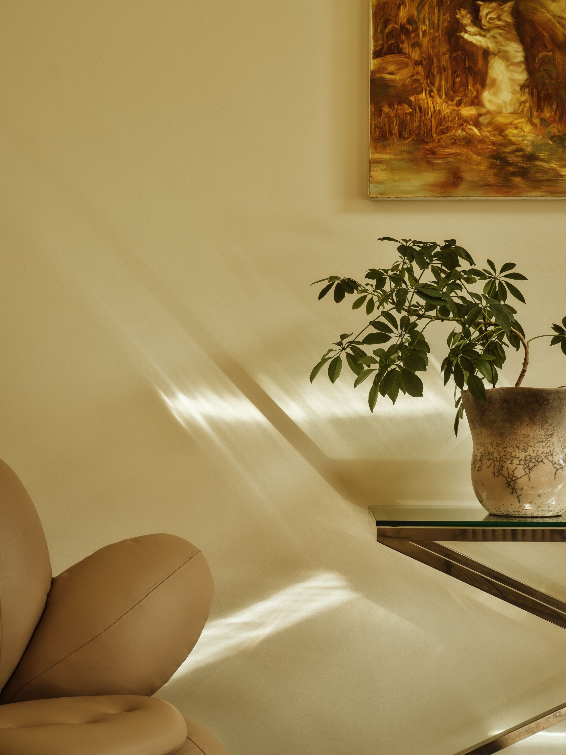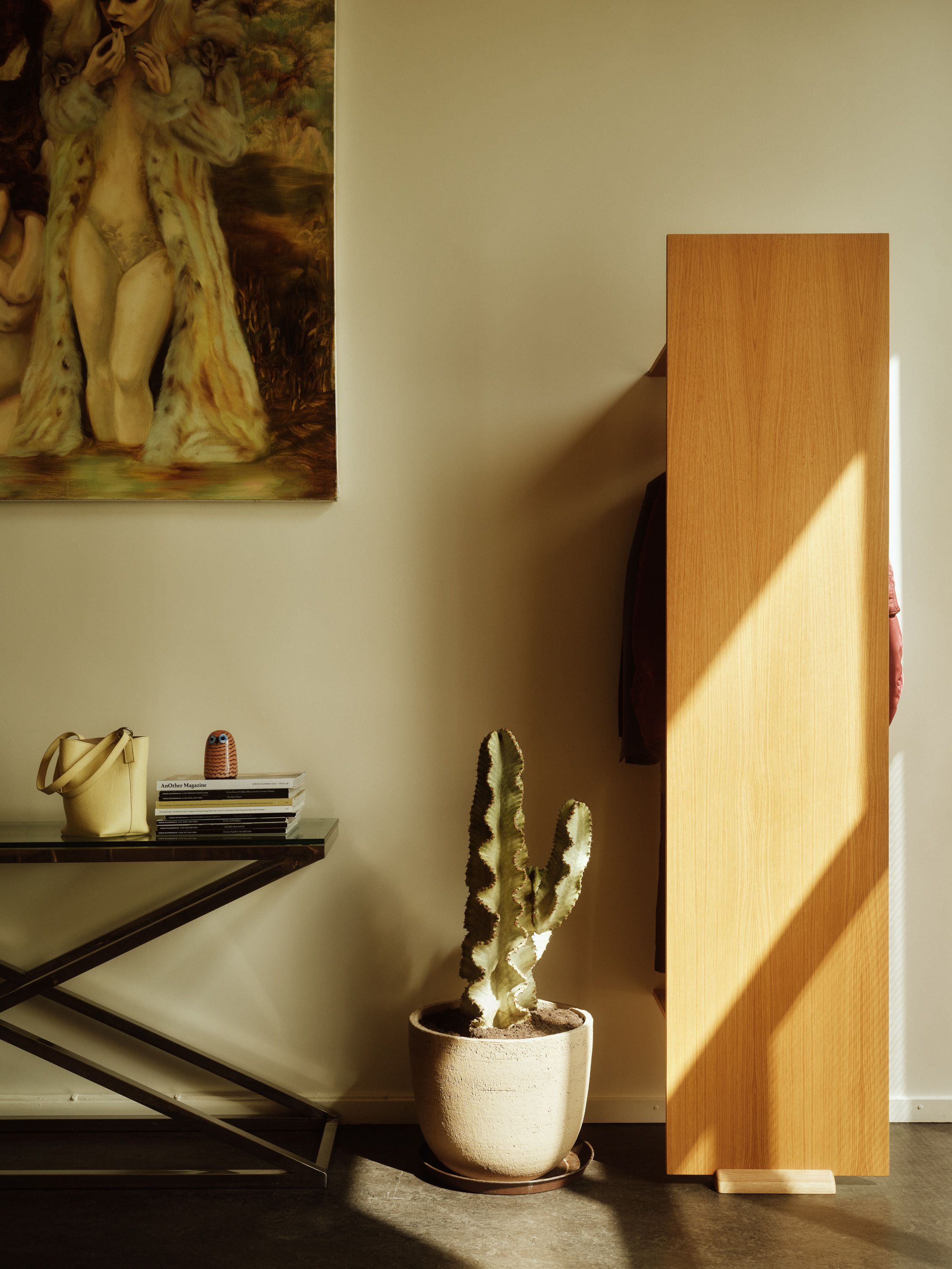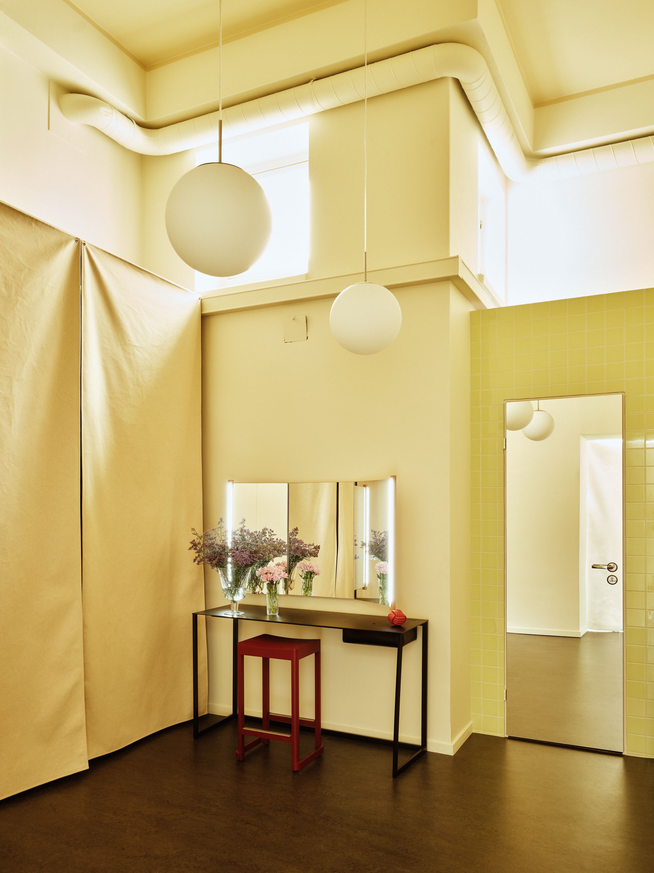 In a former storefront in Punavuori, light floods through tall windows into Maria Veitola’s calm and personal studio — designed together with her friend Samu-Jussi Koski. “Samu always comes up with brilliant ideas, like covering an ugly bathroom door with a mirror. Now it looks as if the room goes on forever,” Maria laughs.