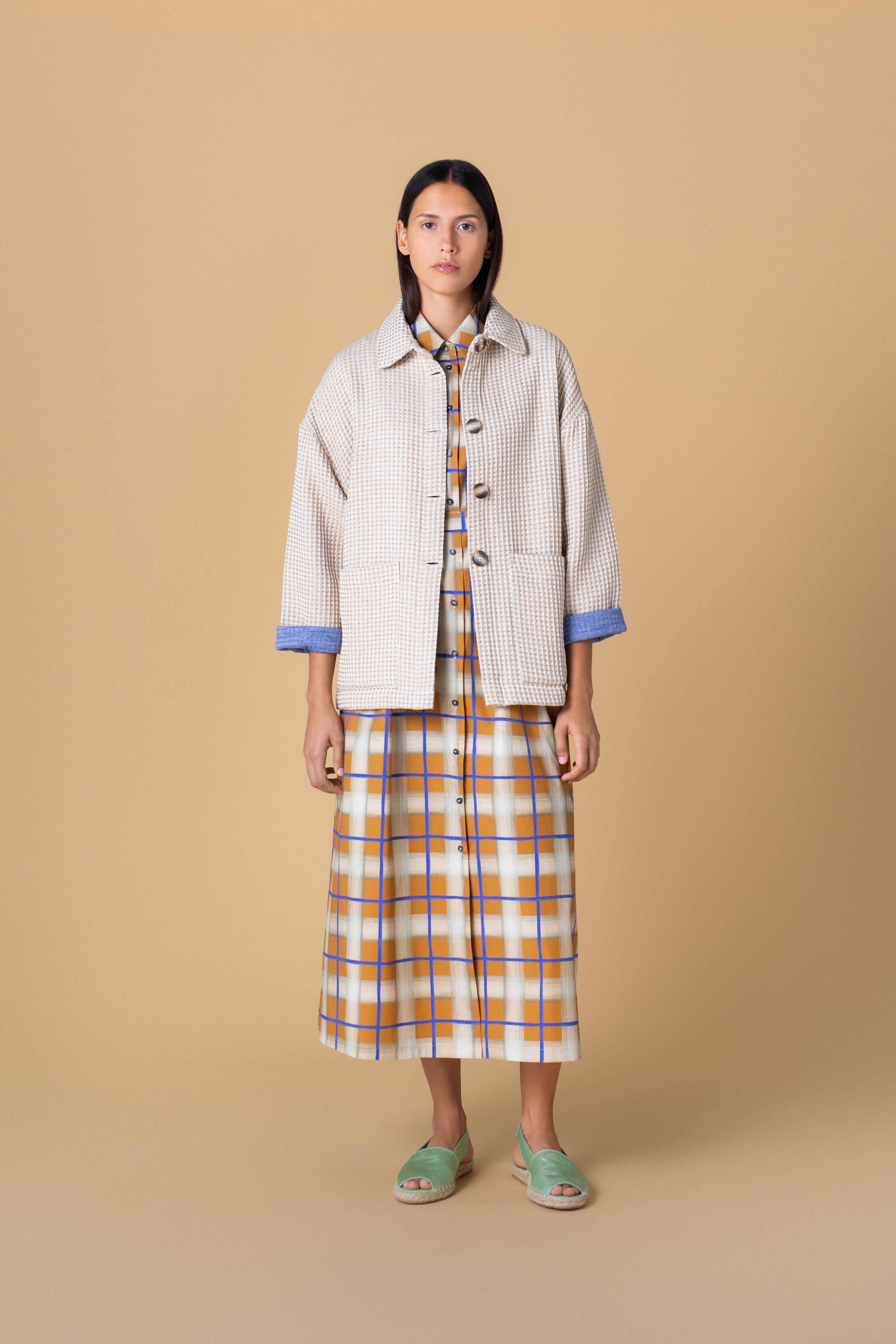Koski tiivistää, että parhaat vaatteet ovat sellaisia, jotka sopivat tilanteeseen kuin tilanteeseen: “RATIA vie minut mielikuvissani suomalaiseen saaristomaisemaan ja minulle syntyi vahva visio mallistosta, jonka vaatteet toimivat eri tilanteissa, esimerkiksi suoraan saaristosaunasta puettuna urbaanimpaan kaupunkitunnelmaan. Mietinkin, miksei pyyhkeestä voisi tehdä takin.” Kosken visio konkretisoituikin mallistossa vohvelikankaasta valmistetussa Vuokko-takissa.